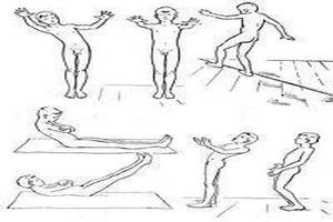 Под контролем зрения у таких больных практически не заметно нарушение координации, а вот в позе Ромберга, когда у них закрыты глаза, симптомы становятся более четкими. Речь развивается медленно, она растянутая, может быть скандированной (по слогам). Развитие письма происходит с опозданием, буквы крупные, текст размашистый, не ровный.